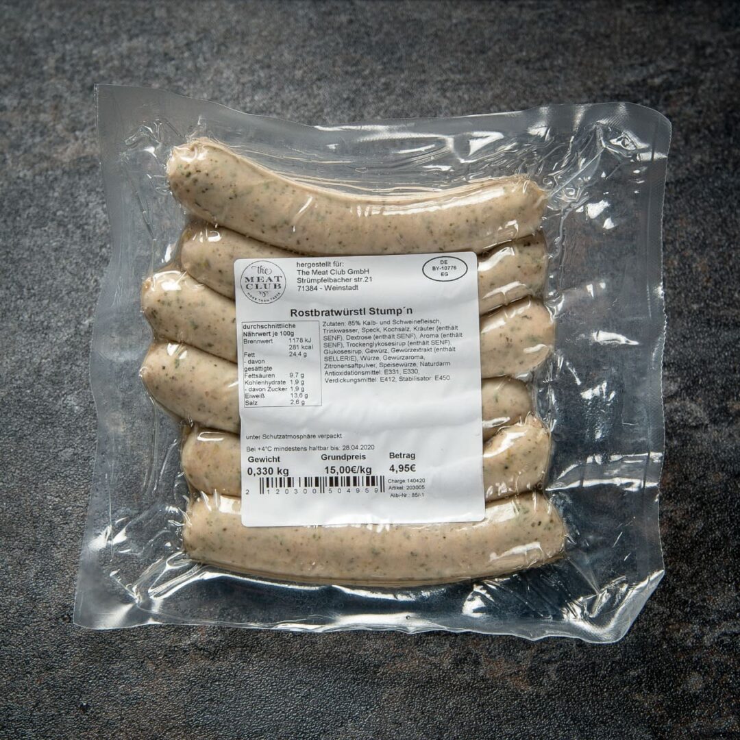 Zutaten: 85% Kalb- und Schweinefleisch, Trinkwasser, Speck, Kochsalz, Kräuter (enthält SENF), Dextrose (enthält SENF), Aroma (enthält SENF), Trockenglykosesirup (enthält SENF), Glukosesirup, Gewürz, Gewürzextrakt (enthält SELLERIE), Würze, Gewürzaroma, Zitronensaftpulver, Speisewürze, Naturdarm